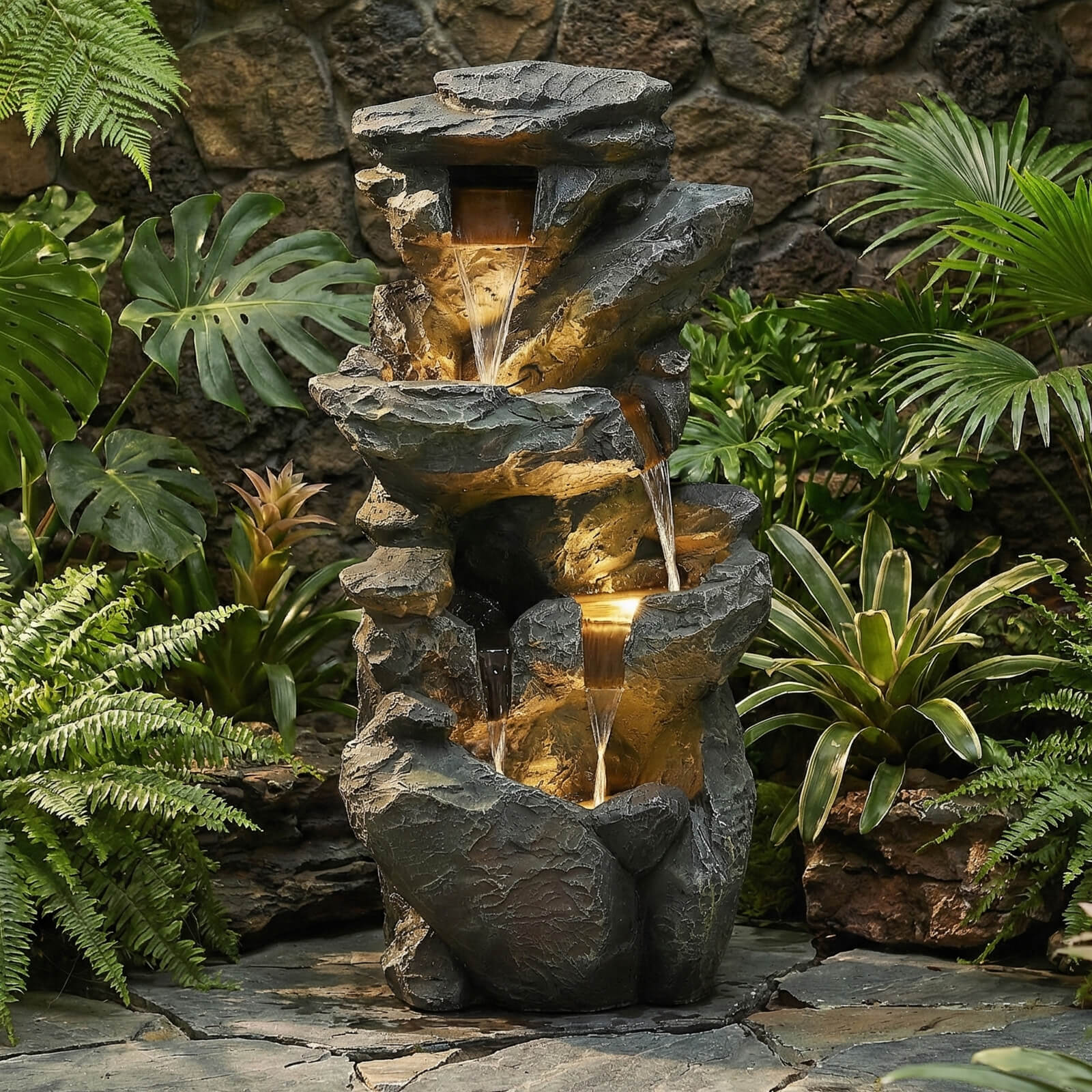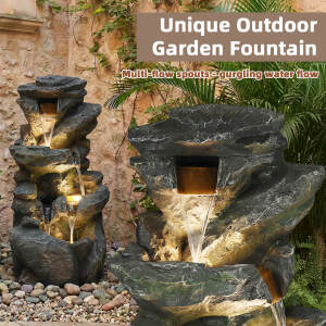 【Natural Rock Outdoor Water Fountain Design】Upgrade your outdoor leisure space with this eye-catching natural rock waterfall fountain! Crafted with realistic rock texture gives each layer a natural stone material feel and touch, with layered stones that mimic the cascading flow of water in nature. The resin garden fountain perfectly combines the serene beauty of nature with modern durability, adding a unique charm to your outdoor space