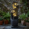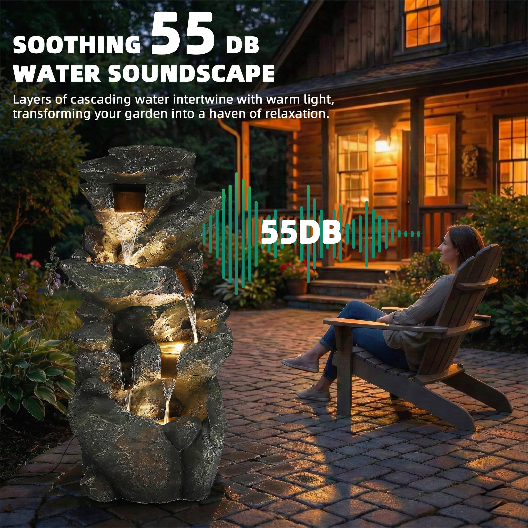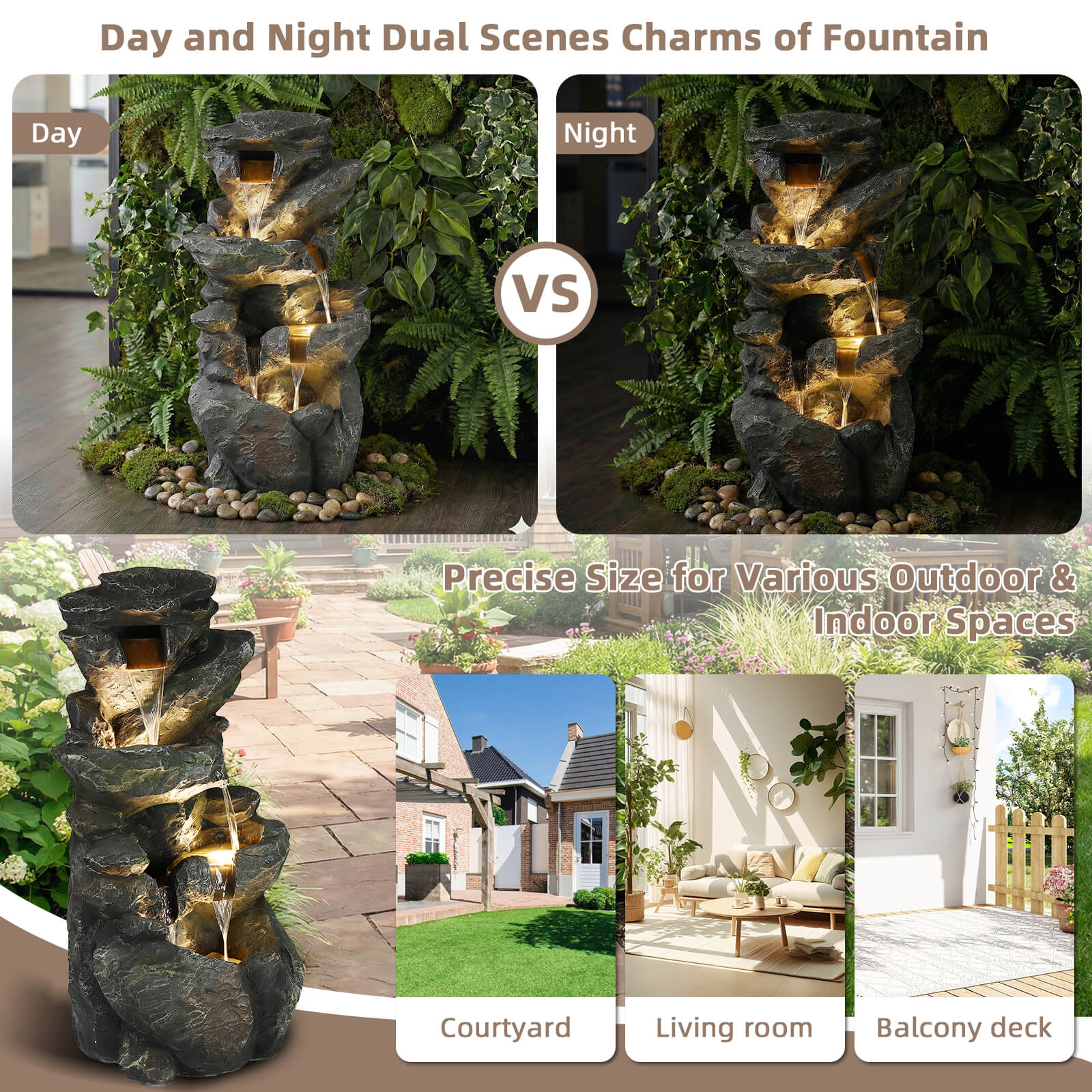 【Built-in LED Lights for Versatile Use】Built-in LED lighting system transforms this fountain into a eye-catching focal point, creating a warm soothing water glow, brings your space to life even after sunset. Whether brightening the daytime garden retreat, setting for midnight contemplation or adding sparkle to gathering, this cascading waterfall Feature covers your needs. Suitable for indoor living rooms, offices, and outdoor patios or balconies, elevating the vibe of your space