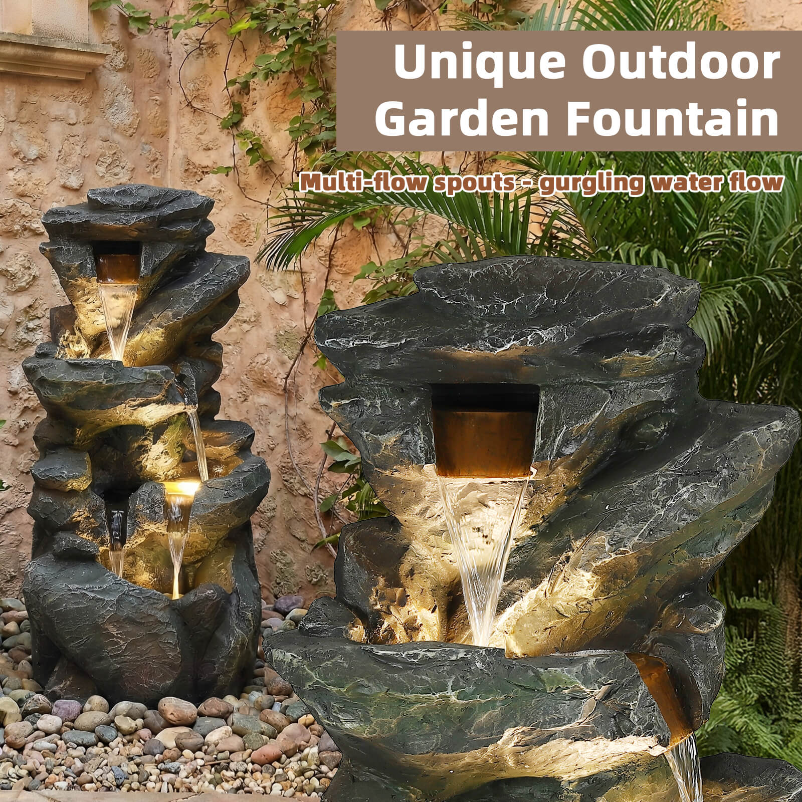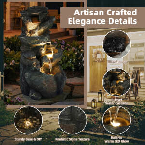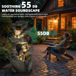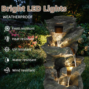 【Premium Materials & DIY Customization】Crafted from high-grade resin, this outdoor water feature exhibits exceptional heat resistance, weather resistance, and structural durability, which can resist chipping, fading and deformation phenomena caused by ultraviolet rays. You can personalize the garden waterfall fountain by adding decorative stones or waterproof colored papers to enhance the integrated LED lighting system, enabling vibrant light effects