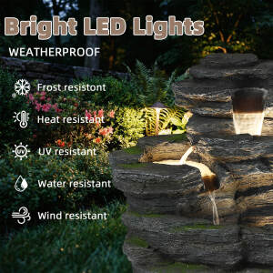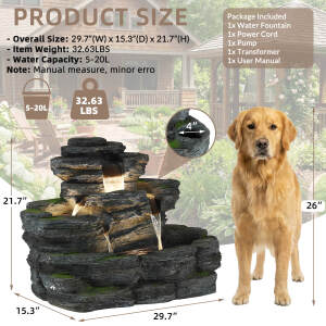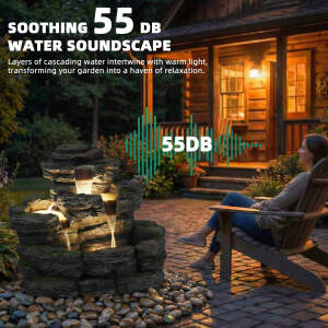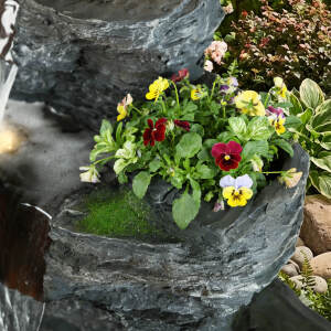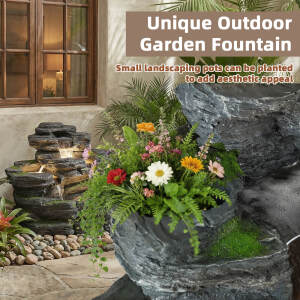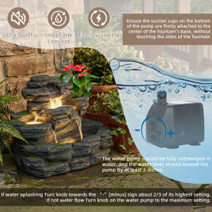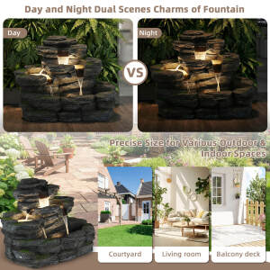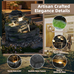 Adjustable Quiet Flow, With Planter Pot, Artificial Moss Grain, Durable Resin (Heat/Wind/Rain Resistant), Realistic Rock Texture, Easy Install + UL-Certified Safe, Indoor/Outdoor Dual-Purpose, Warm LED Lights (Day & Night Use), DIY Fish Tank & Light Color Customizable