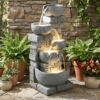Adjustable Quiet Flow, With Planter Pot, Artificial Moss Grain, Durable Resin (Heat/Wind/Rain Resistant), Realistic Rock Texture, Easy Install + UL-Certified Safe, Indoor/Outdoor Dual-Purpose, Warm LED Lights (Day & Night Use), DIY Fish Tank & Light Color Customizable