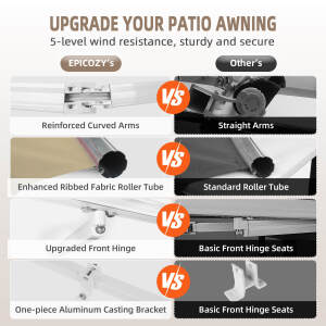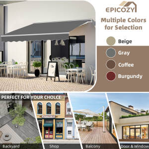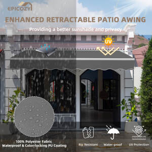 【Create Shade Outside 】Tired of the blazing sun ruining your outdoor fun? Well, don’t sweat it! EPICOZY retractable patio awning is made of 280g/m² premium polyester with PU water-resistant coating, which is splash-proof, anti ultraviolet and fading, resistant to sun fading, also has 50UV+ solar protection. On those super sunny days, protect yourself from sunburns with a deck awning and reduce the heat coming from the window or door.