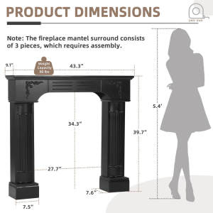 Assemble & Customer Service: Overall Dimension: 43.3″D x 9.1″W x 39.7″H. The fireplace mantel surround can be assembled in 10-15 mins with the instruction included, no tools required. Note: 1. This is for electric fireplaces only, not gas; 2. The metal screw should be reserved and exposed a small part for latch, do not drive the screw all the way in; 3. If you have any questions or need assistance, please do not hesitate to contact our customer service