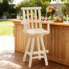 【360° Swivel Function & Built-in Footrest】Equipped with a heavy-duty 360° swivel mechanism secured by a lubricated steel pivot core, this Adirondack wooden bar stools set delivers ultra-smooth, silent rotation. You can easily swivel to reach for drinks on the counter or chat with guests without standing or moving the chairs. The sturdy log crossbars connecting the legs double as a comfortable footrest, reducing knee pressure and fatigue