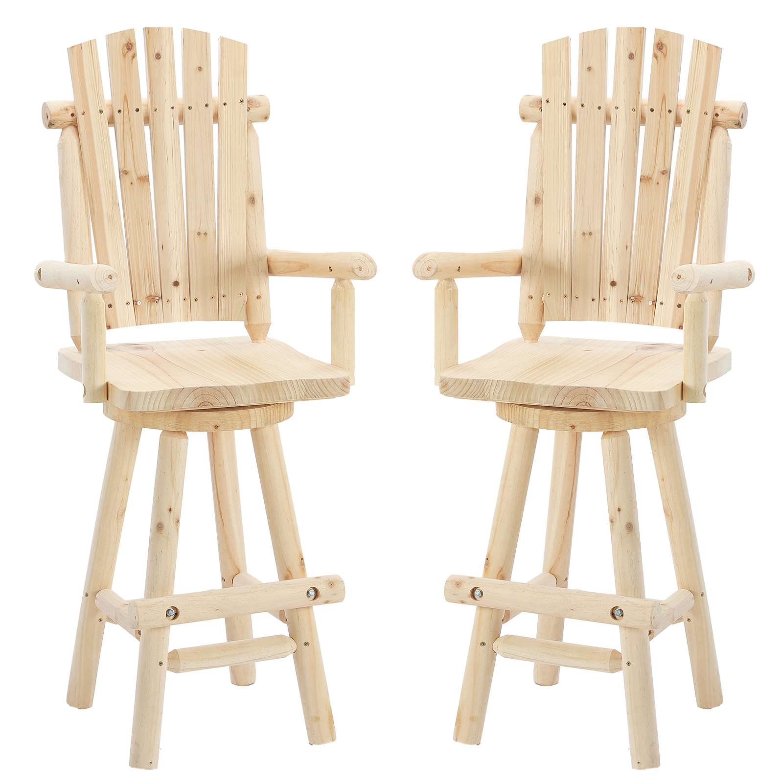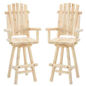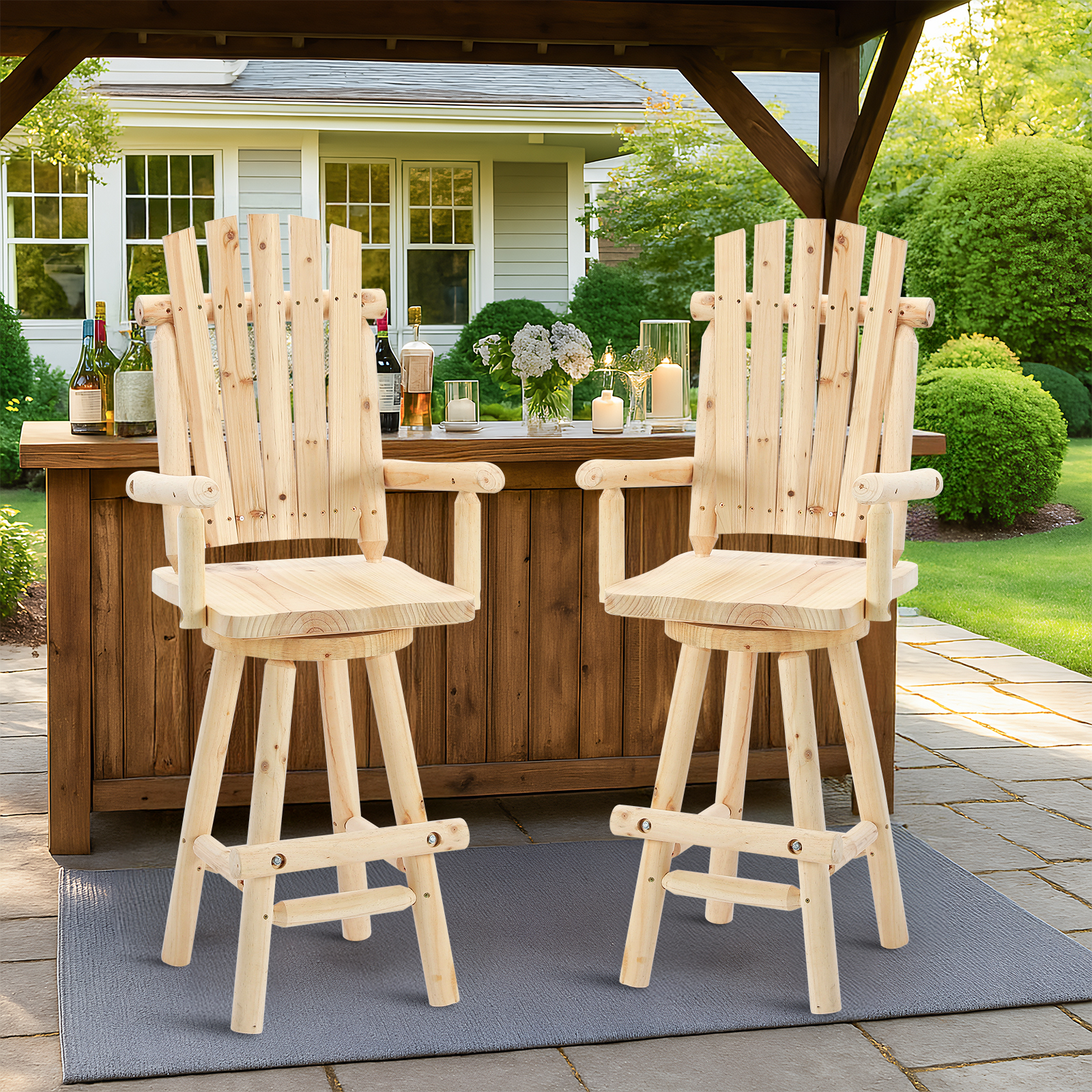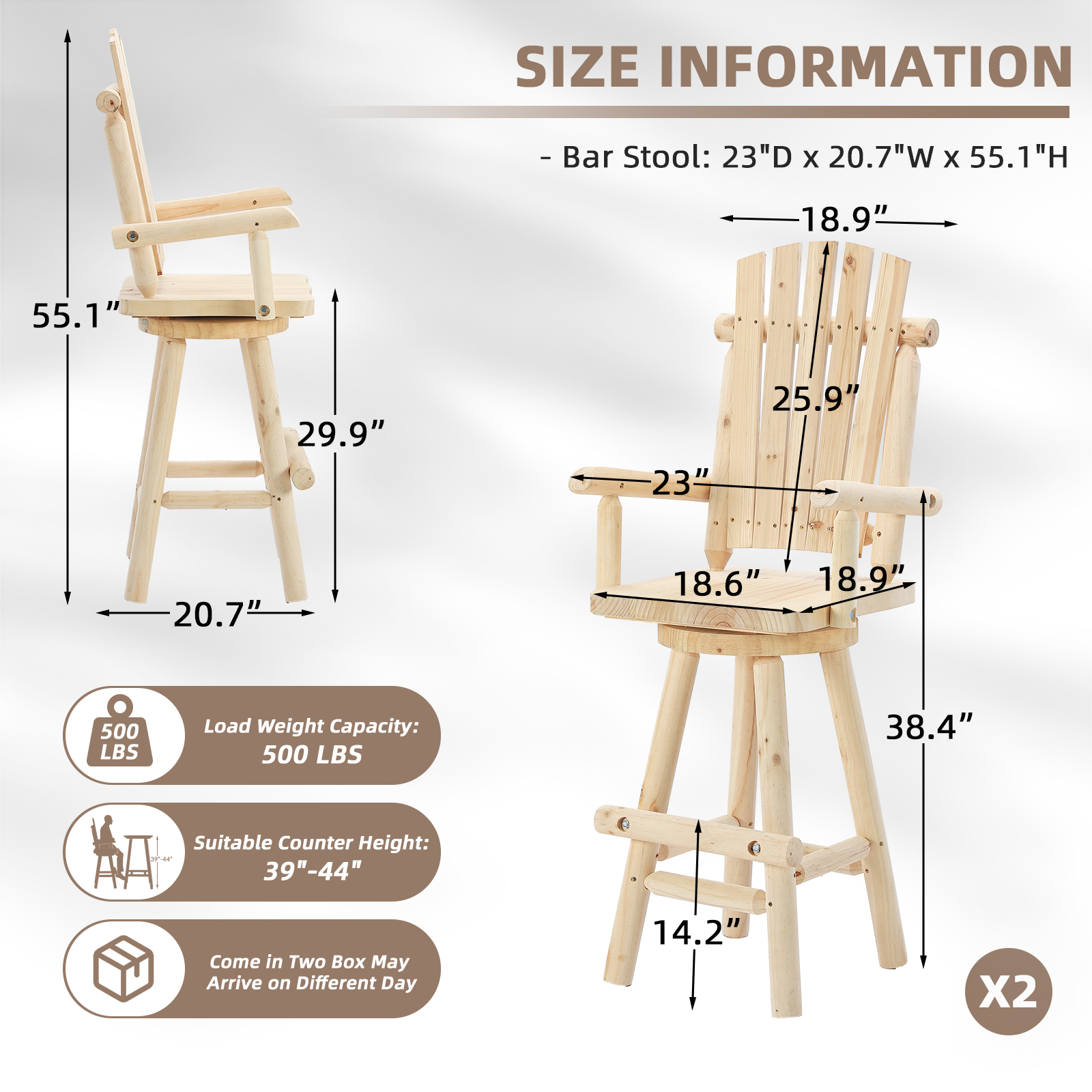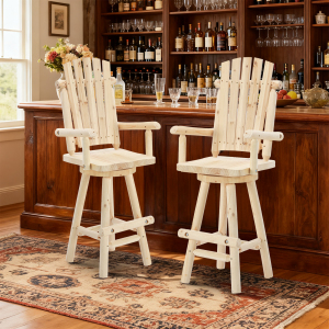 【360° Swivel Function & Built-in Footrest】Equipped with a heavy-duty 360° swivel mechanism secured by a lubricated steel pivot core, this Adirondack wooden bar stools set delivers ultra-smooth, silent rotation. You can easily swivel to reach for drinks on the counter or chat with guests without standing or moving the chairs. The sturdy log crossbars connecting the legs double as a comfortable footrest, reducing knee pressure and fatigue