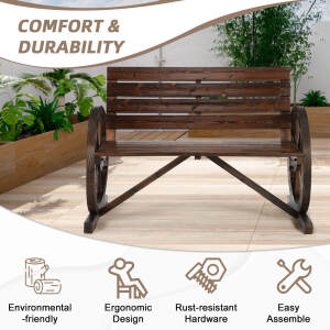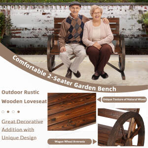 Sit on this comfortable and safe garden bench chair with friends to talk or rest a moment! The exquisite wood grain texture is suitable for any decoration, adding natural charm to your living space. The2-seater wooden loveseat is finished in a rustic wood color, and the slatted seat is more comfortable and easy to shake up. The natural wood material is good quality and stable, but to make this bench serve you longer, please don’t let it in the rain.