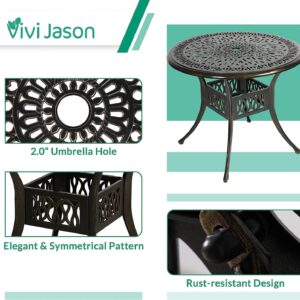 Cast Aluminum ConstructionElegant hollowed table top is decorative than the traditional one pieces design. It is more durable and stable. Weather resistant and easy to care. | Adjustable FeetTable feet are individually adjustable to accommodate ground conditions and keep your table well-balanced. | Φ2” Umbrella HoleThe design of the umbrella hole is suitable for you using in the sunny or rainy days and helps you get a cool time. |