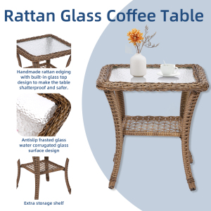 【HANDMADE RESIN WICKER】The side table is made of high-quality PE wicker, making it all-weather resistant for rain, wind, and hot sun, not easy to fade and lose luster, which is solid and rust-resistant for long-time outdoor use.